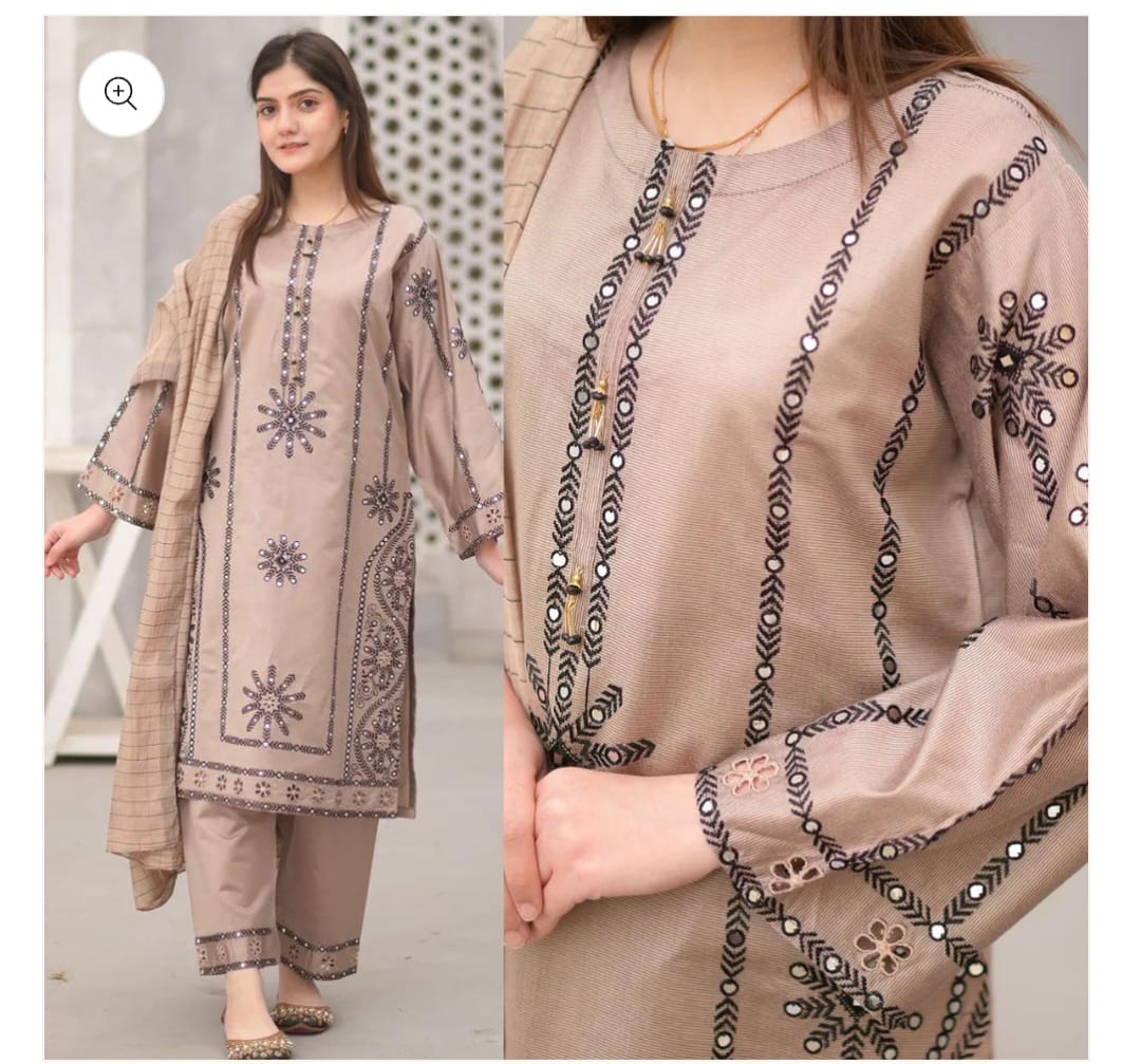 Dupatta (Wool Shawl Fabric): Completing the ensemble, the dupatta is made from a luxurious wool shawl fabric. This shawl is soft, warm, and drapes beautifully, providing a touch of class and elegance. The perfect accessory to complement the overall look, it can be worn as a traditional shawl or draped elegantly over the shoulders.