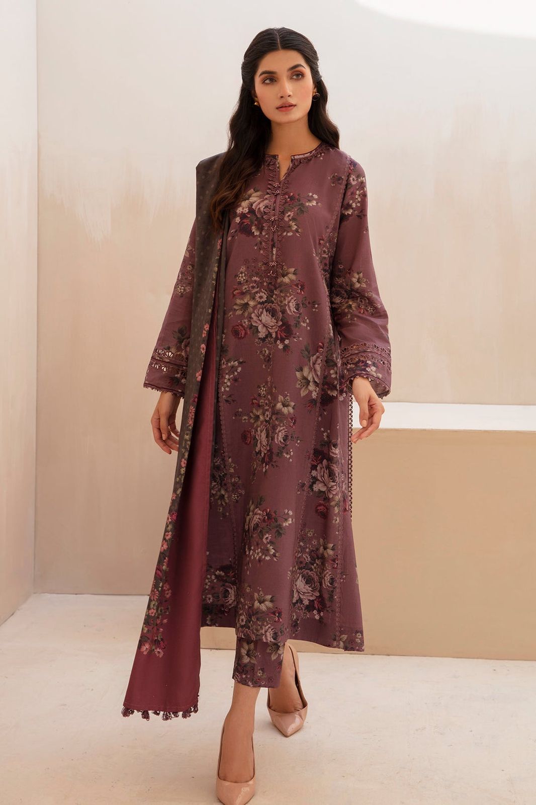 Elevate your winter wardrobe with this elegant 3-piece ladies' khaddar dress, thoughtfully designed for comfort and style.