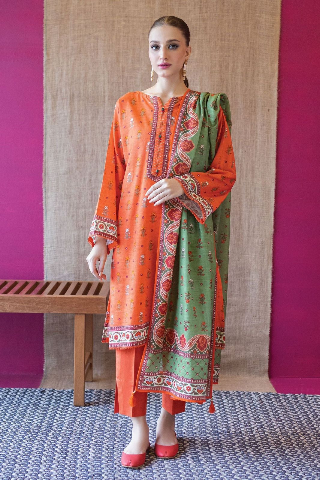 - Dupatta Material: Luxurious wool shawl, adding a touch of sophistication. Its soft texture and vibrant design complement the outfit beautifully, making it ideal for casual and formal occasions.