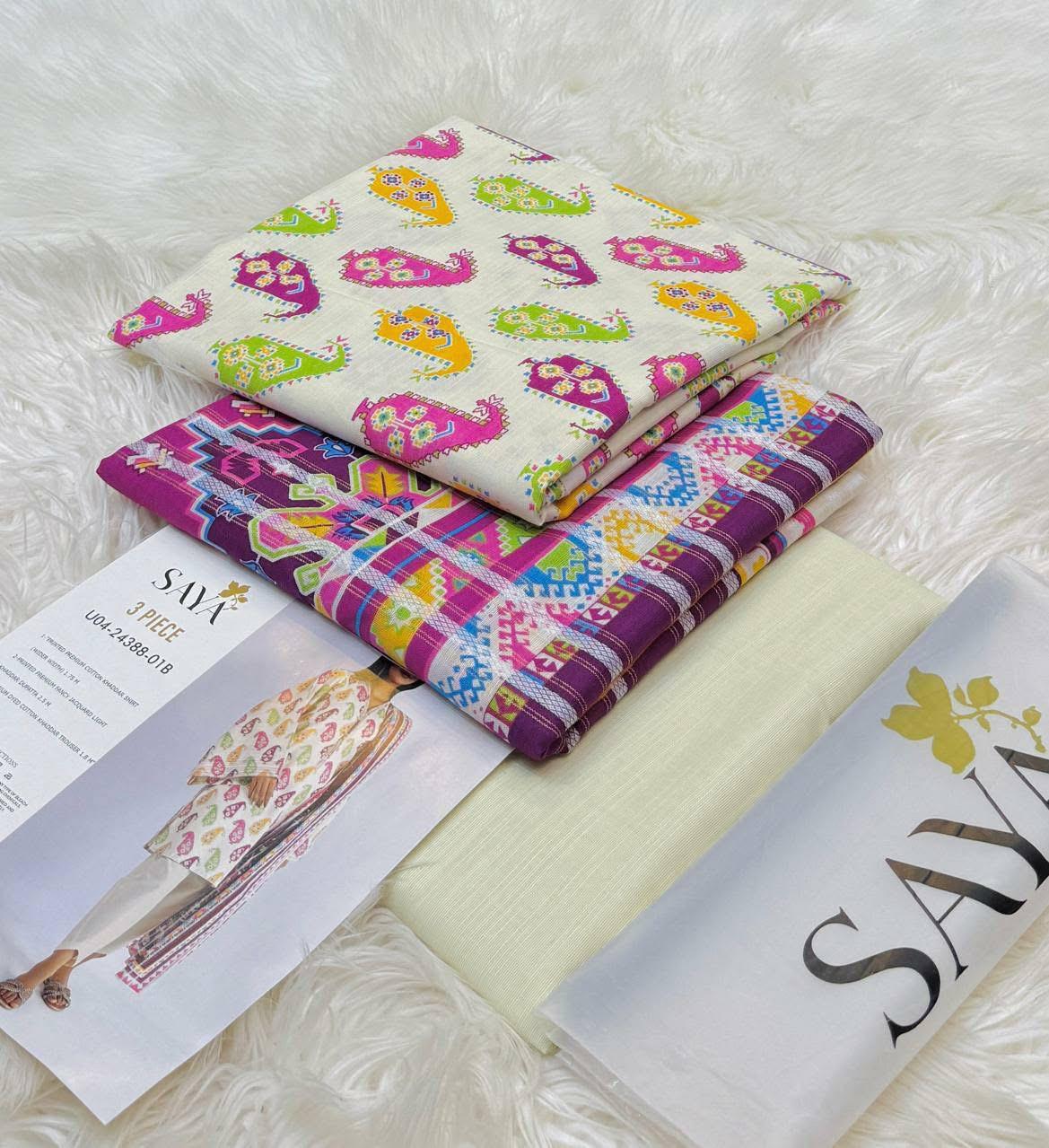 This Printed Khaddar 3-Piece Suit combines cozy winter comfort with vibrant seasonal style. Crafted from warm, durable Khaddar, it features eye-catching prints that elevate everyday wear. Complete with a matching dupatta and trousers, it offers a balanced blend of tradition, elegance, and practicality—perfect for casual outings and winter festivities.