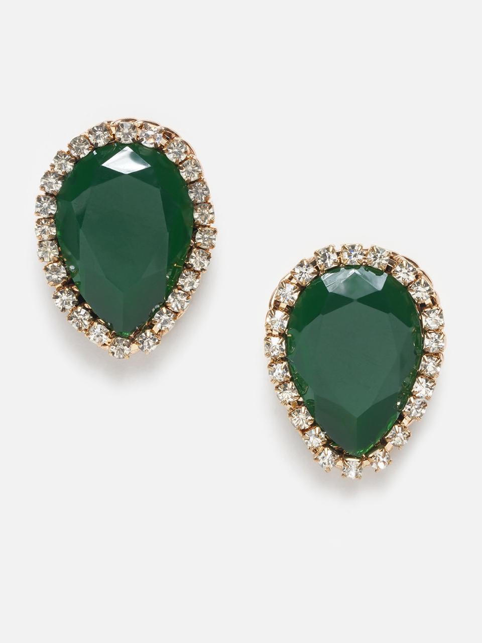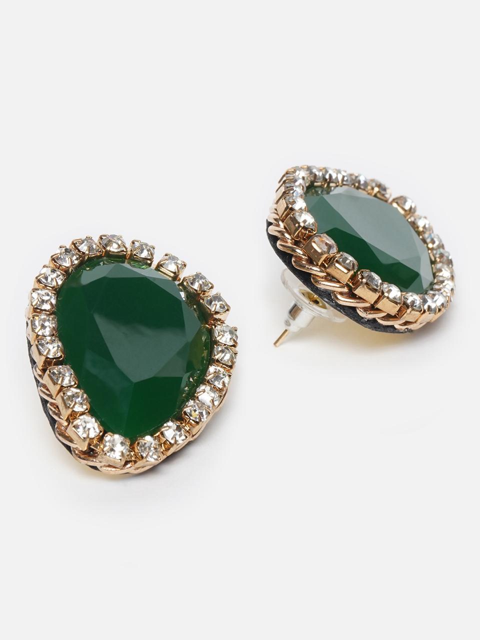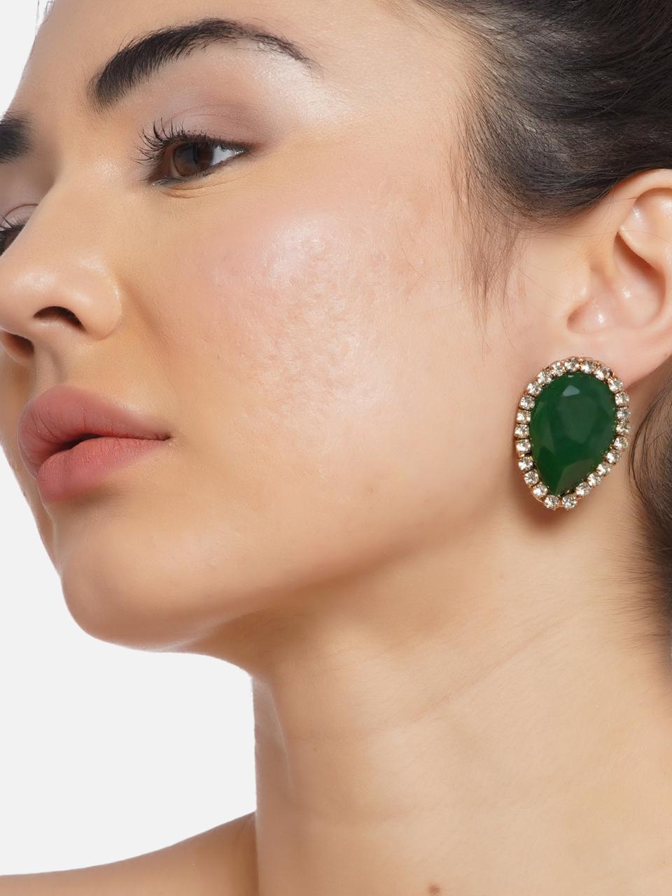 SK_1001 Green and Gold Teardrop Stud Earrings